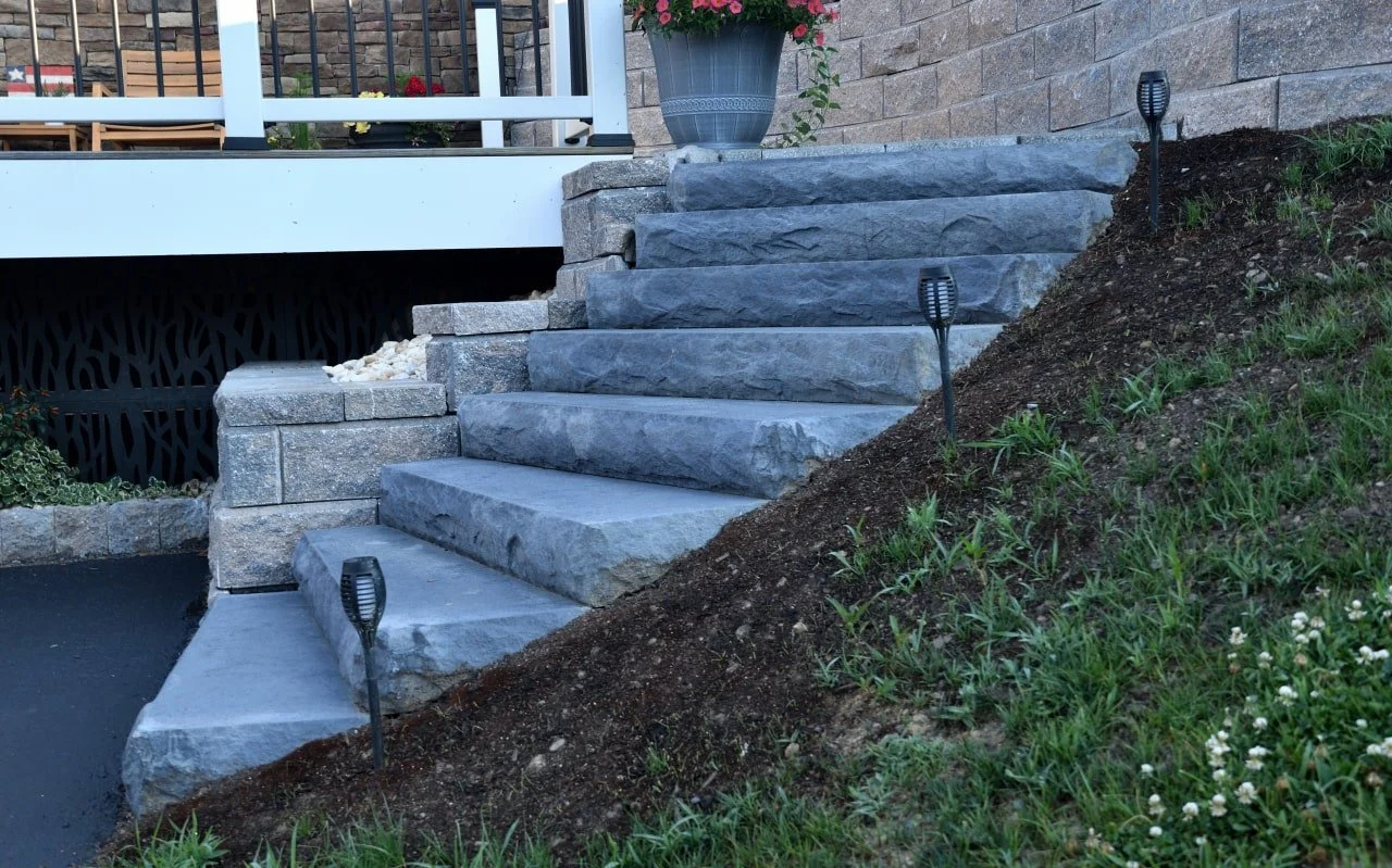 Outdoor Spaces: Steps, Benches, Edging, Fire Pits, Water Features, and Outdoor Lighting Schedule a Consultation